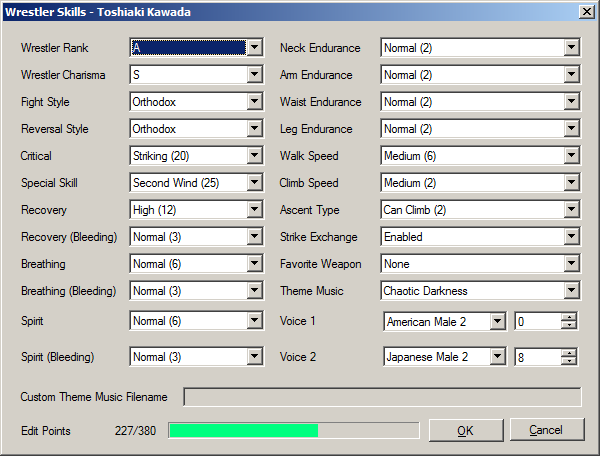 View and change the wrestler's parameters here.