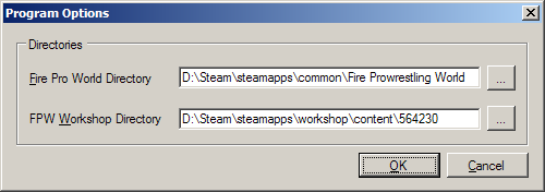 Set the directory where Fire Pro Wrestling World is installed here. This will allow the program to read information from the Game DLL, as well as any external files (read: ring textures).