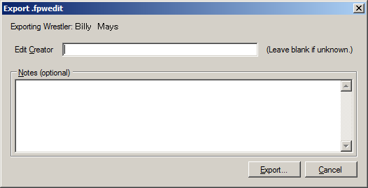 Once you've selected the wrestler, select "Wrestler"→"Export Wrestler Data" from the menu. This will bring up the export dialog: