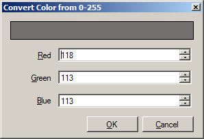 When finished, press to perform the color conversion. The Red, Green, and Blue values in the main Color Dialog will be updated to reflect the conversion result.