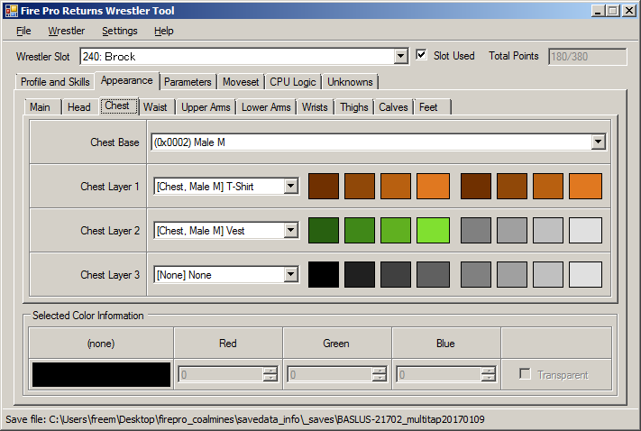 The Fire Pro Wrestling Returns Wrestler Tool allows you to view and manipulate wrestler data from a Fire Pro Wrestling Returns save file.