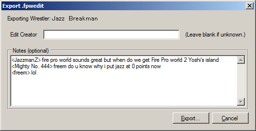 | 4 | (value from previous field) | Notes about this edit wrestler. |