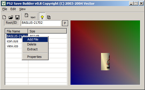 To replace a file in a save using PS2 Save Builder, right click on the filename of the raw Fire Pro Returns save, and select "Add File".